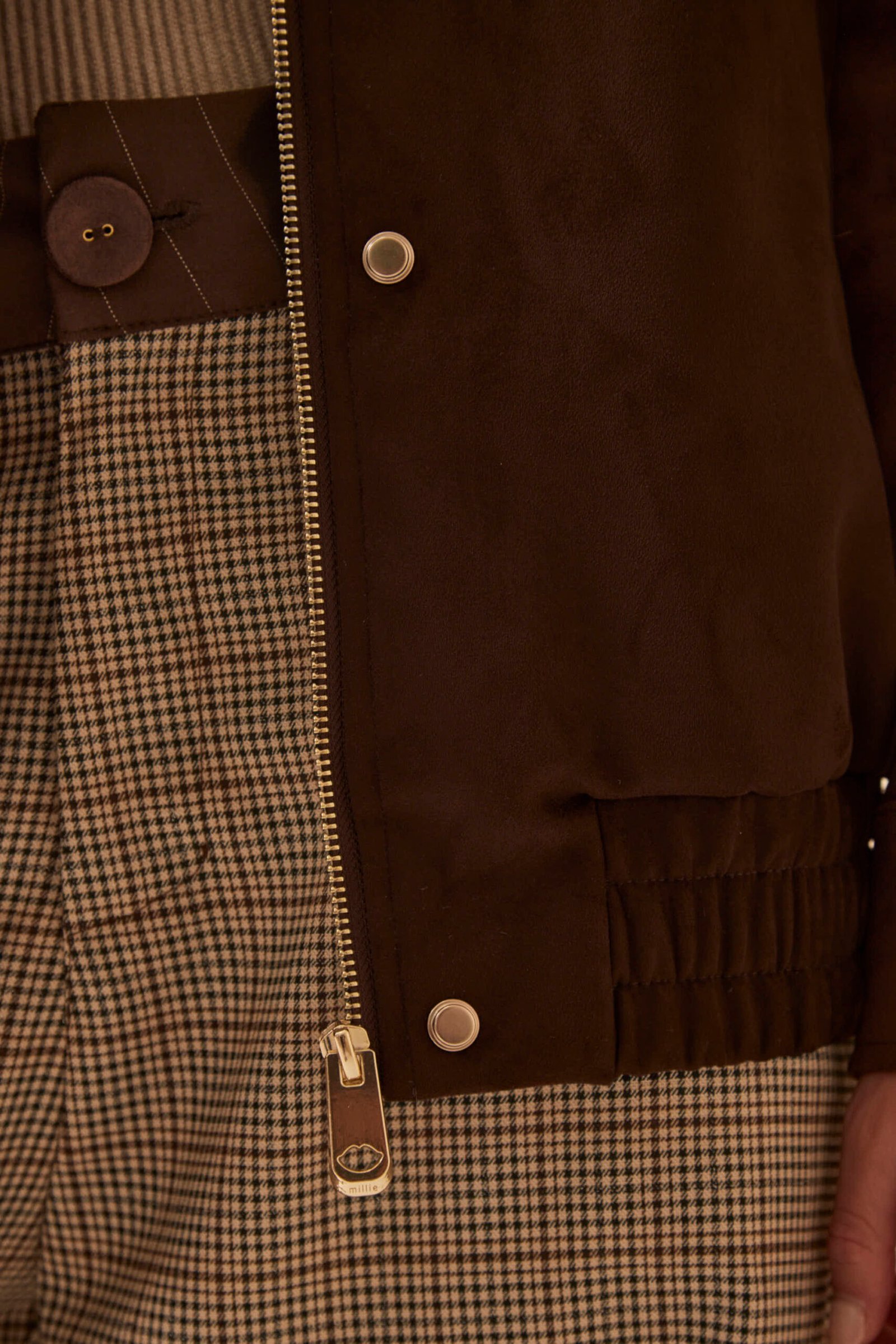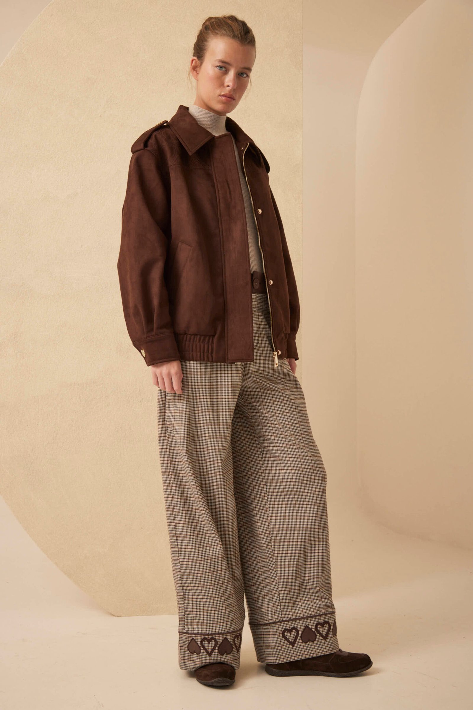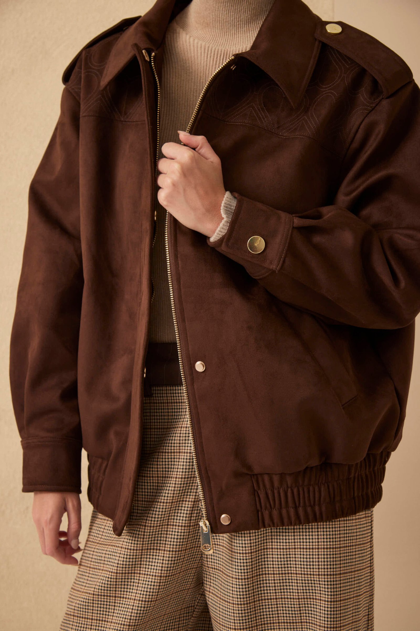 ¿Por qué esta prenda es para mí? Porque una campera de gamuza oversize es un statement. El pattern bordado Millie en el canesú es un detalle artesanal premium, los snaps en presillas y puños le dan funcionalidad y el conjunto es pura sofisticación relajada.