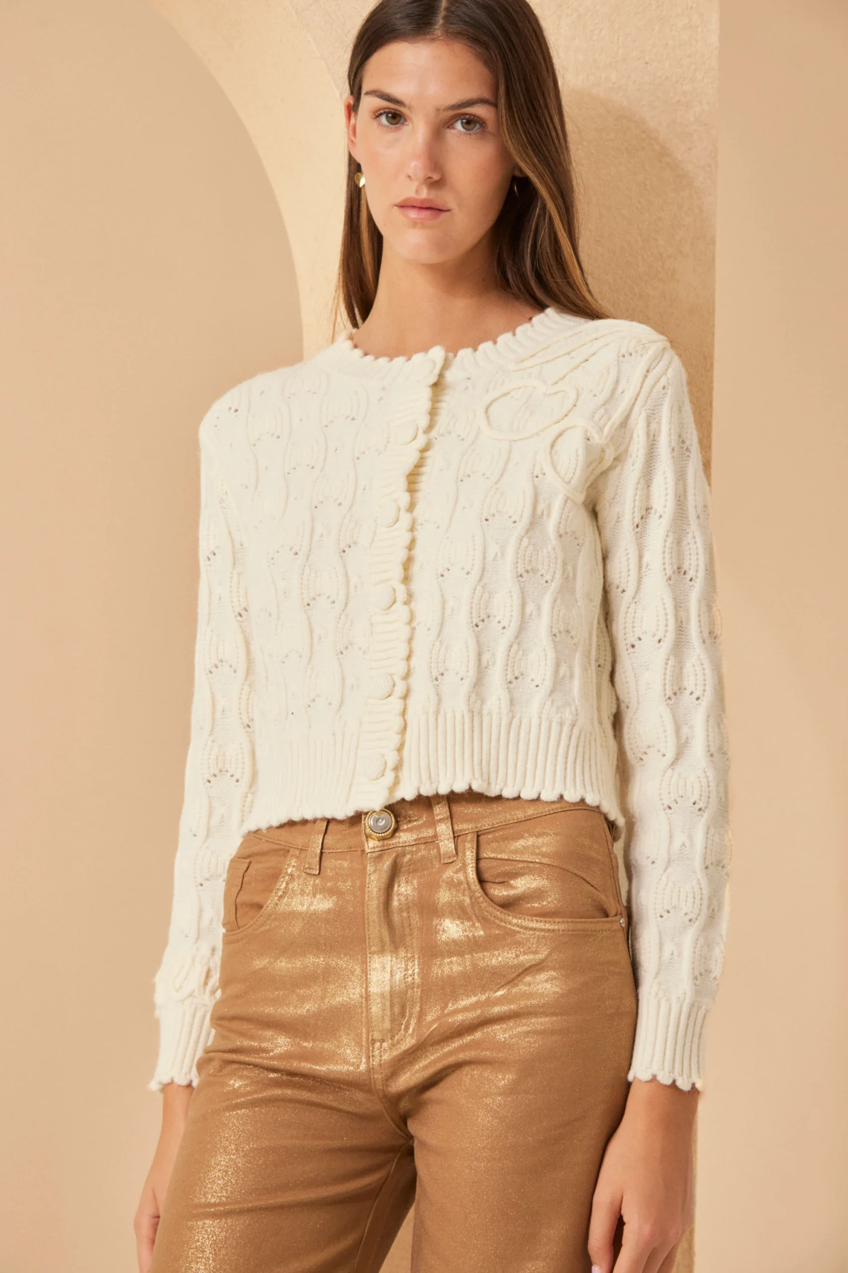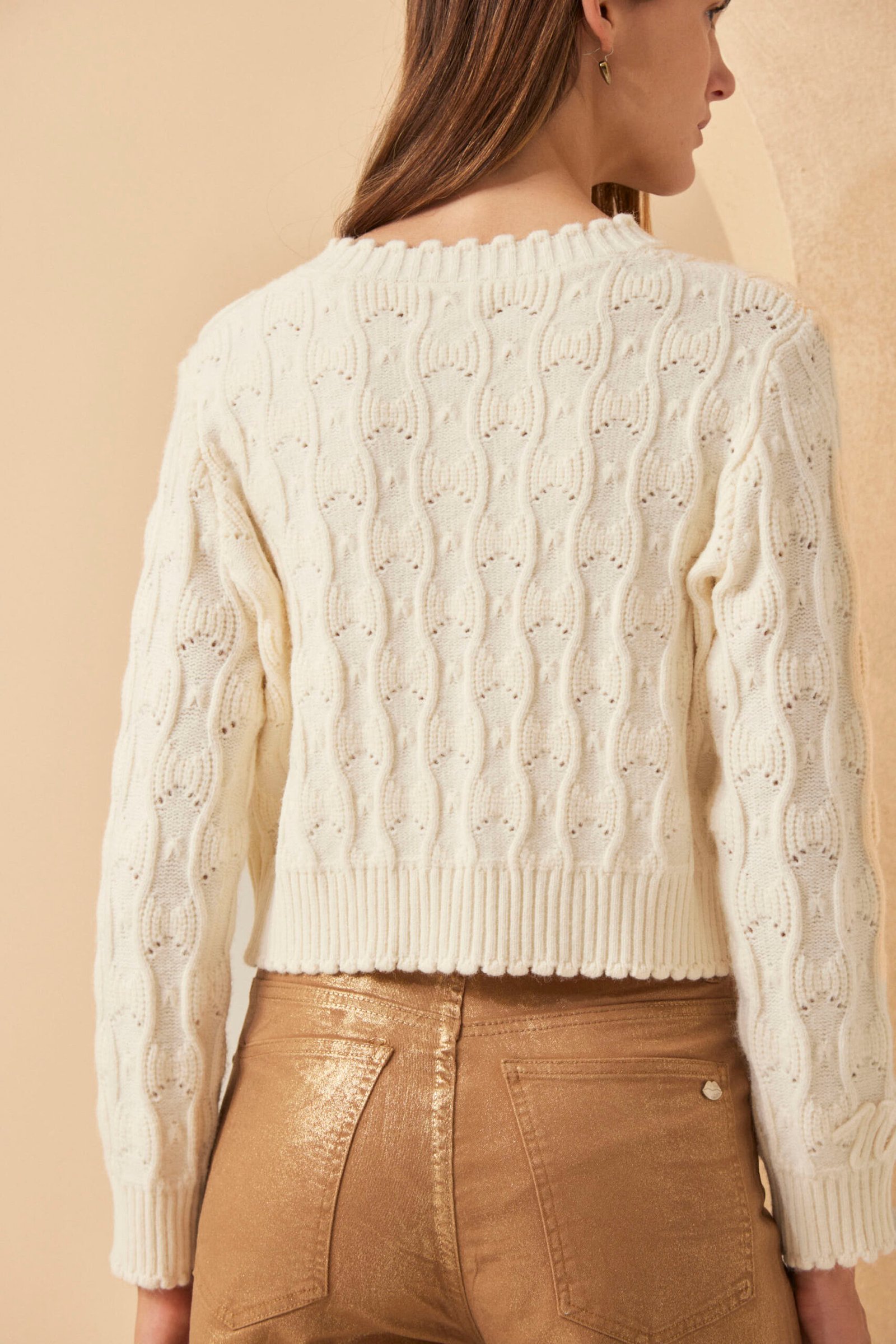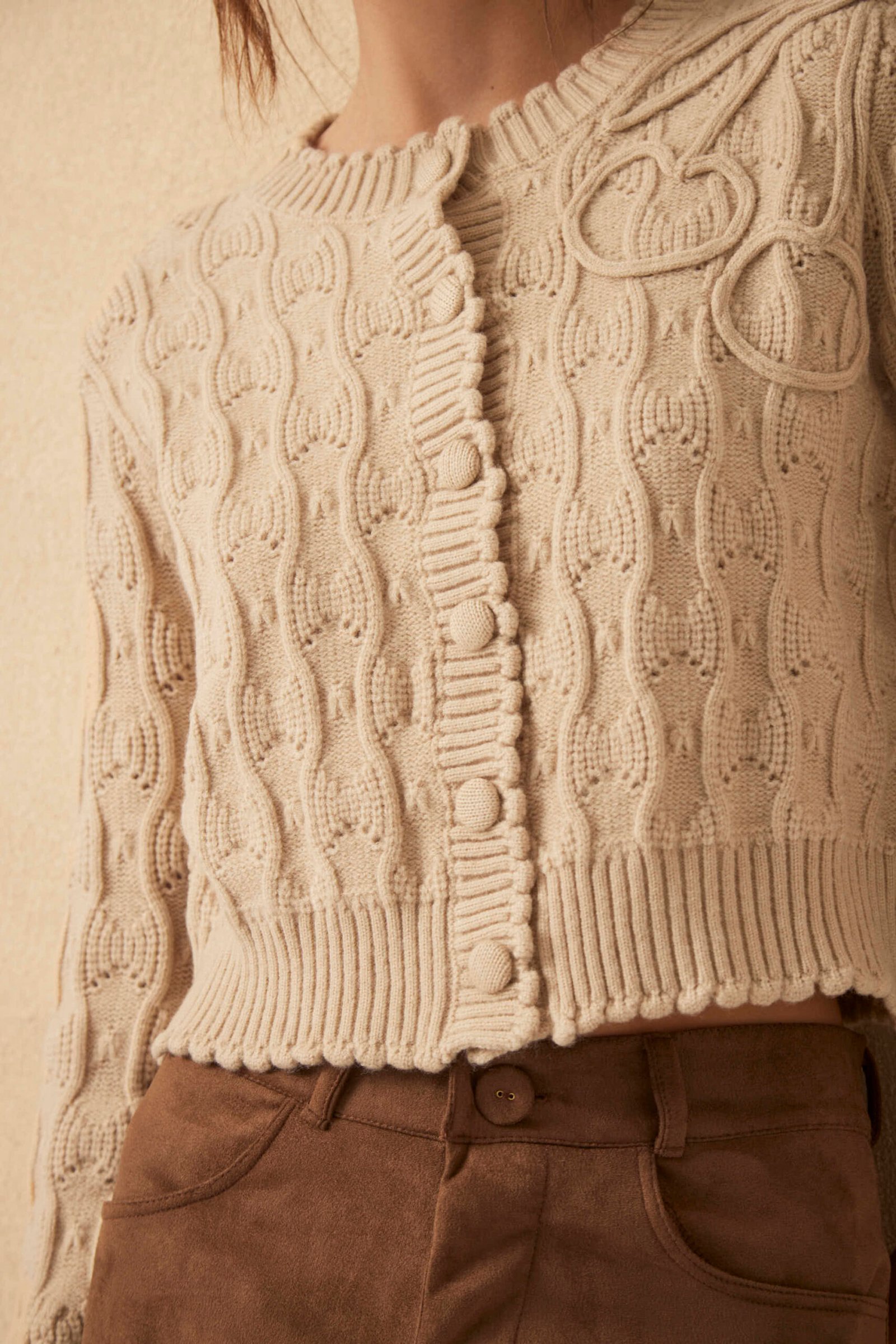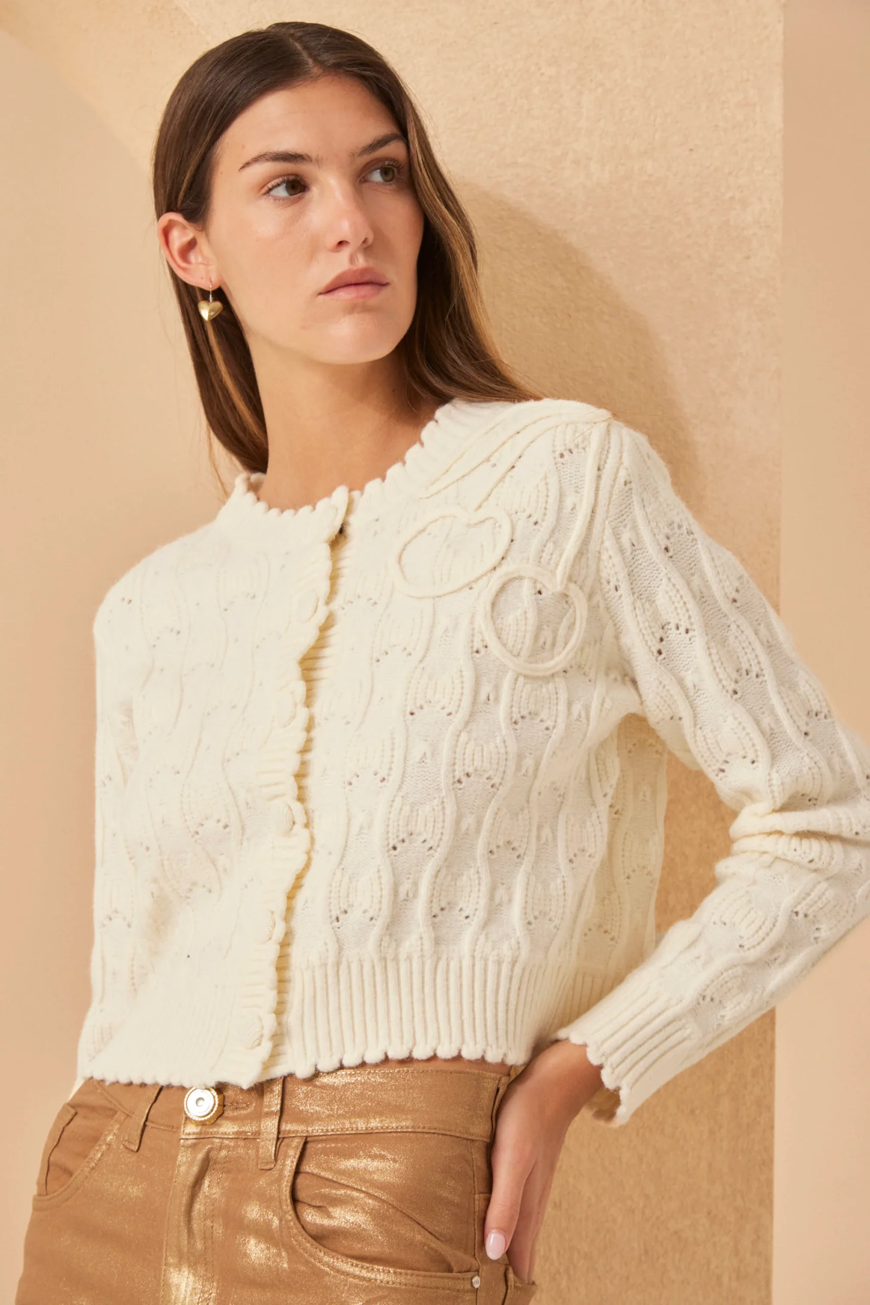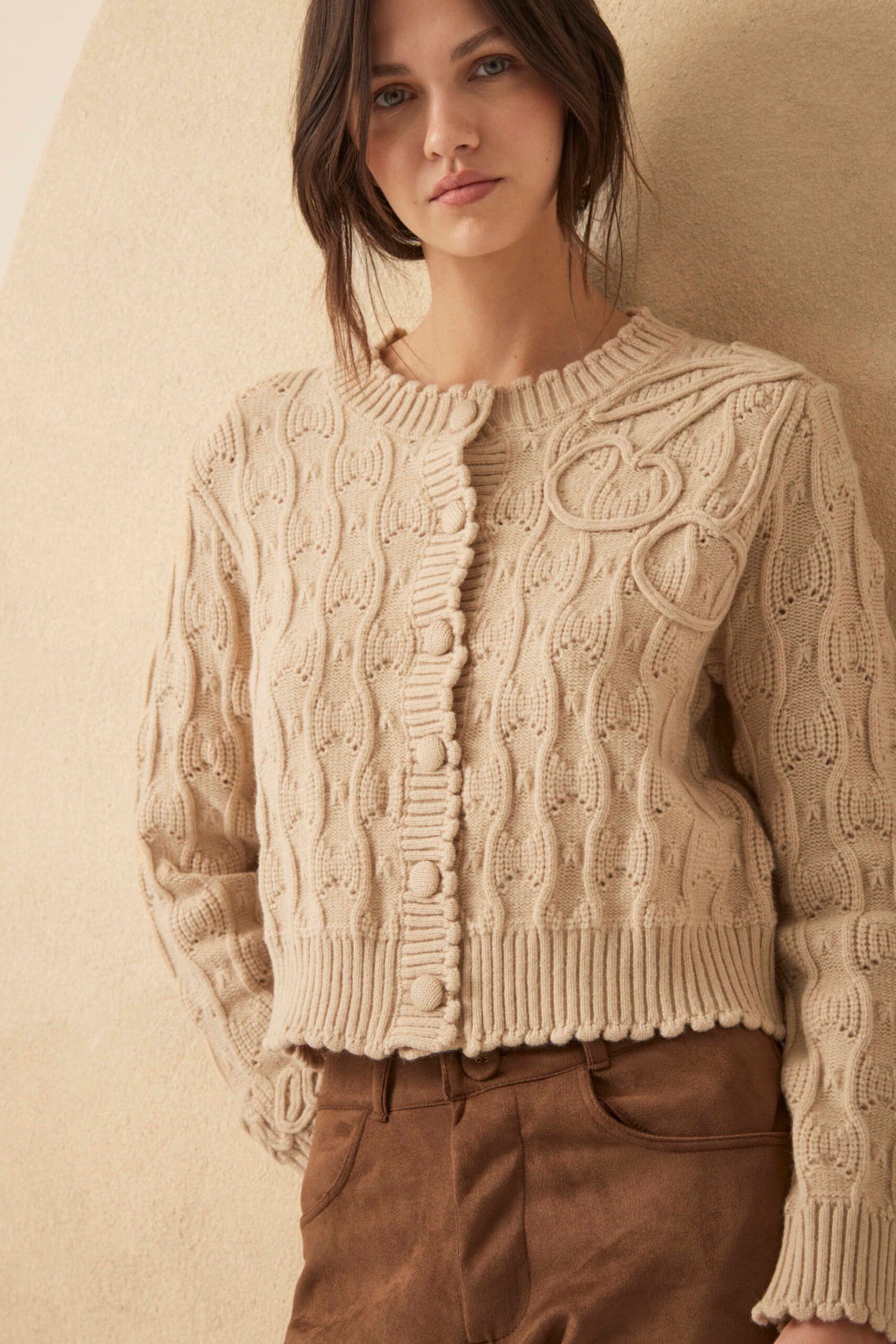 El Cardigan Bonnie combina puntos, onditas en puños, cuello y vista, y un bordado artesanal en diseño exclusivo Millie. Botones forrados. Cada detalle suma. Composición: viscosa, nylon, elastano y lana.
