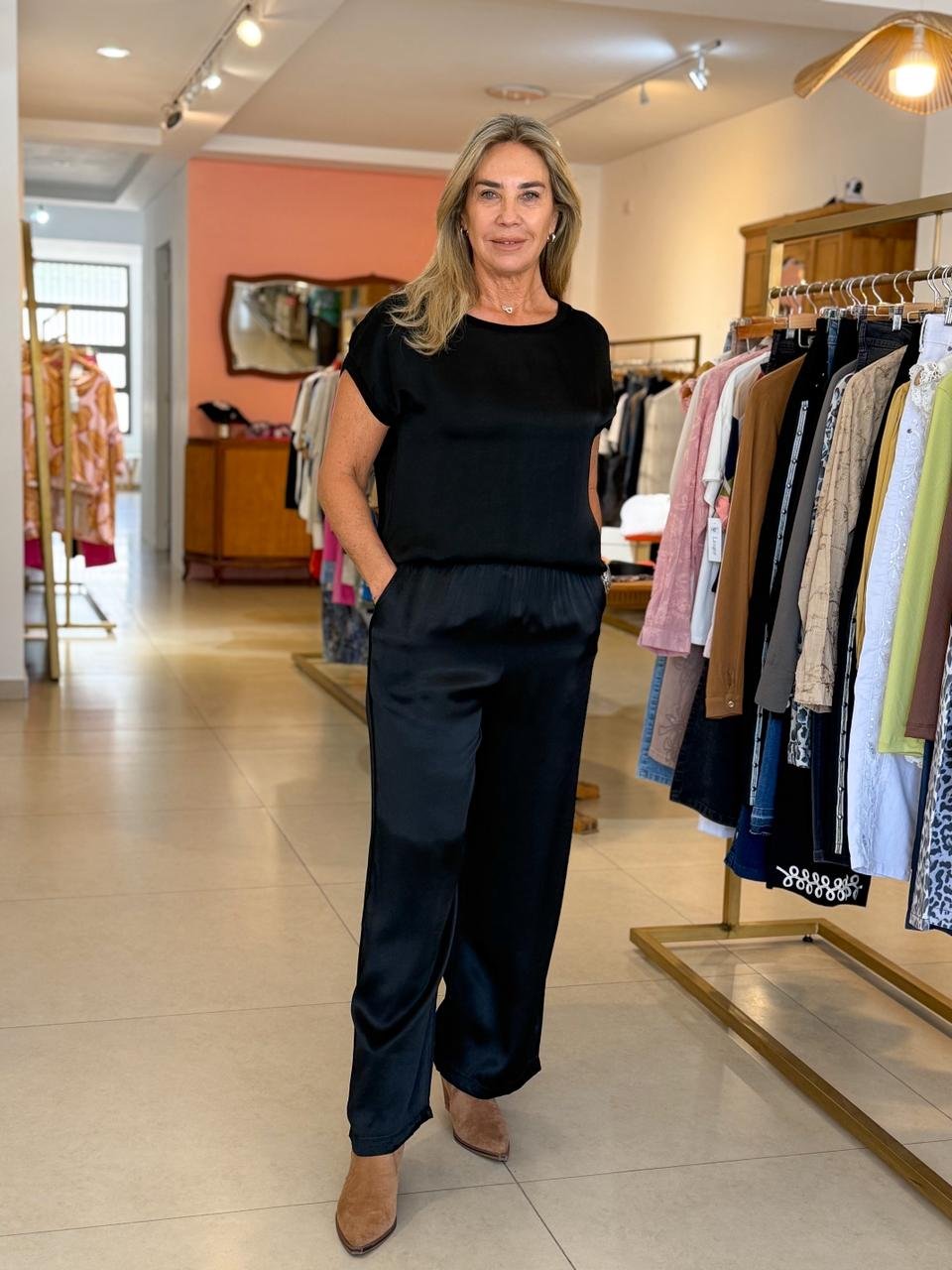 CONJUNTO DE DOS PIEZAS CONFECCIONADO EN SATÉN. SE CARACTERIZA POR SU CAÍDA, COMODIDAD Y ELEGANCIA