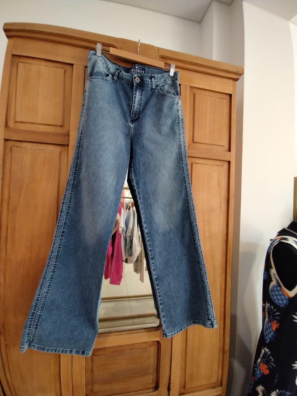 PANTALÓN  DE JEAN CORTE PALAZZO, TIRO ALTO. CON PRESILLAS EN LA CINTURA