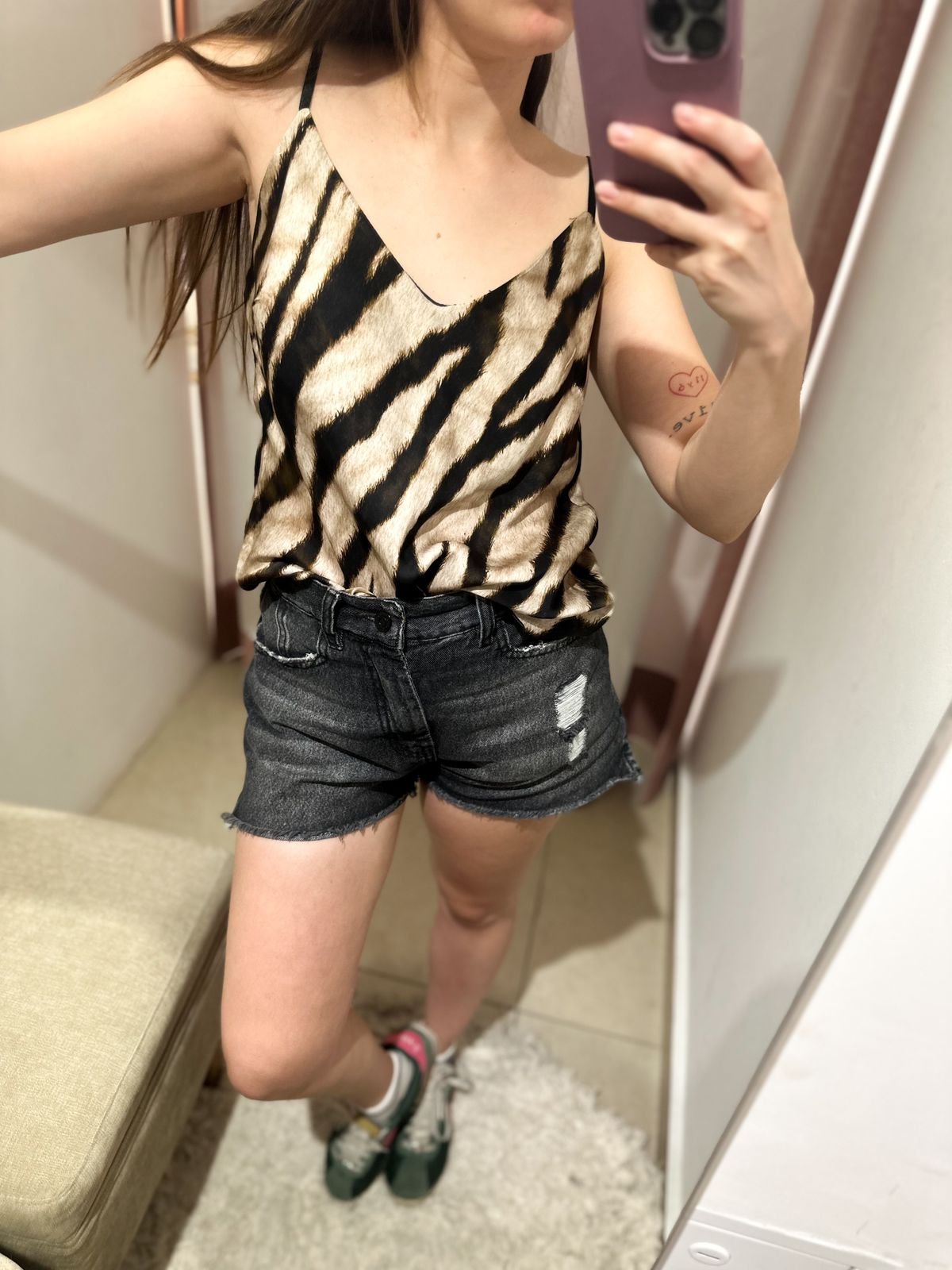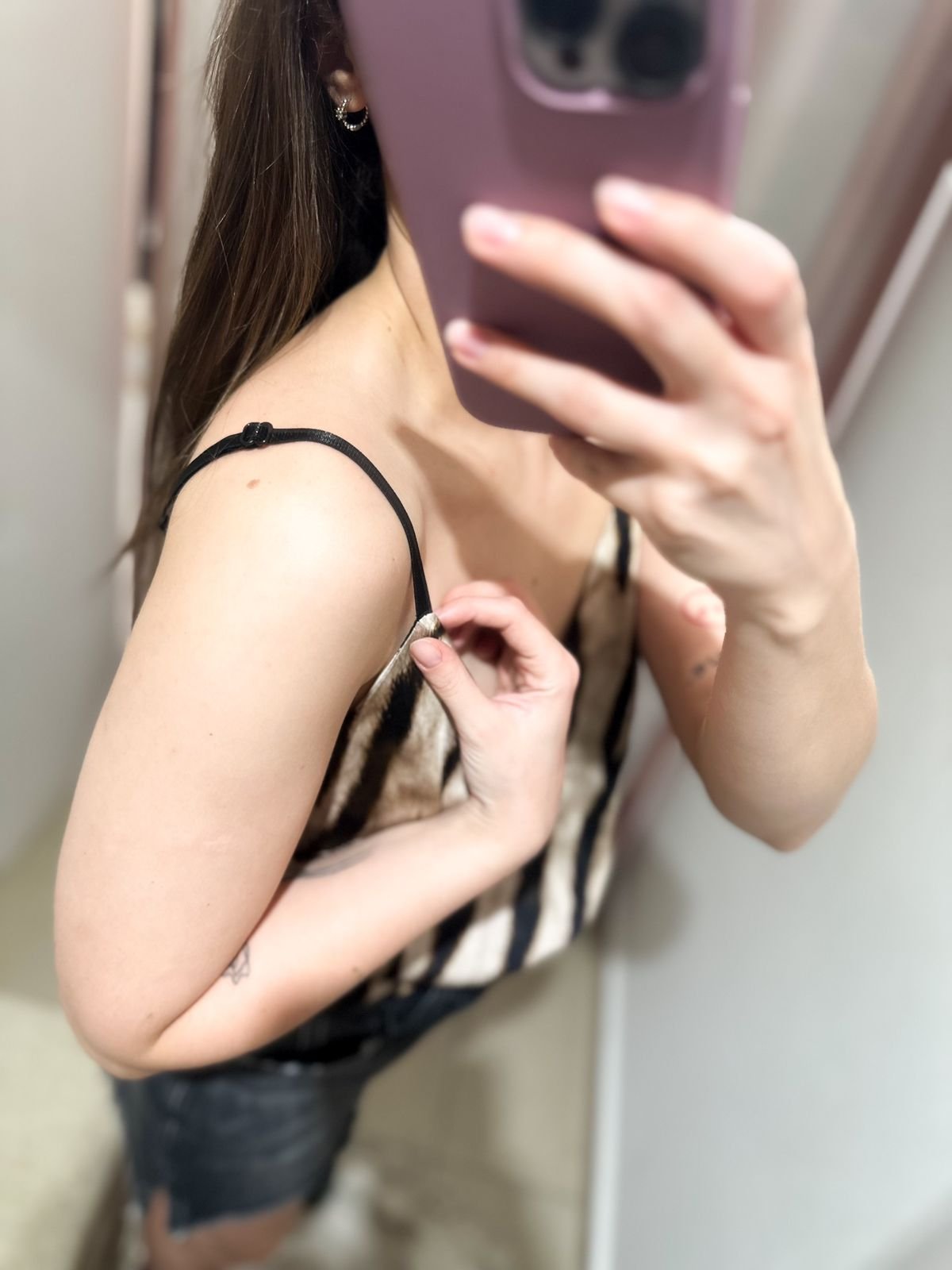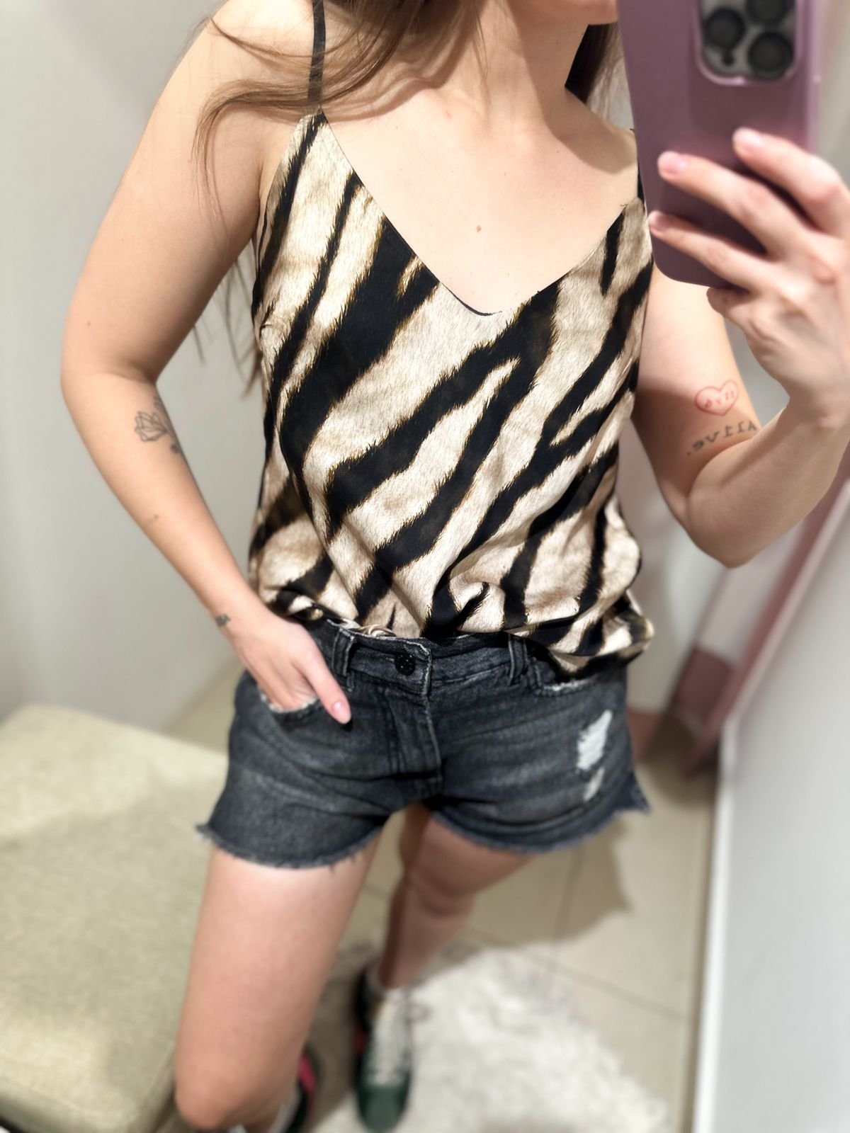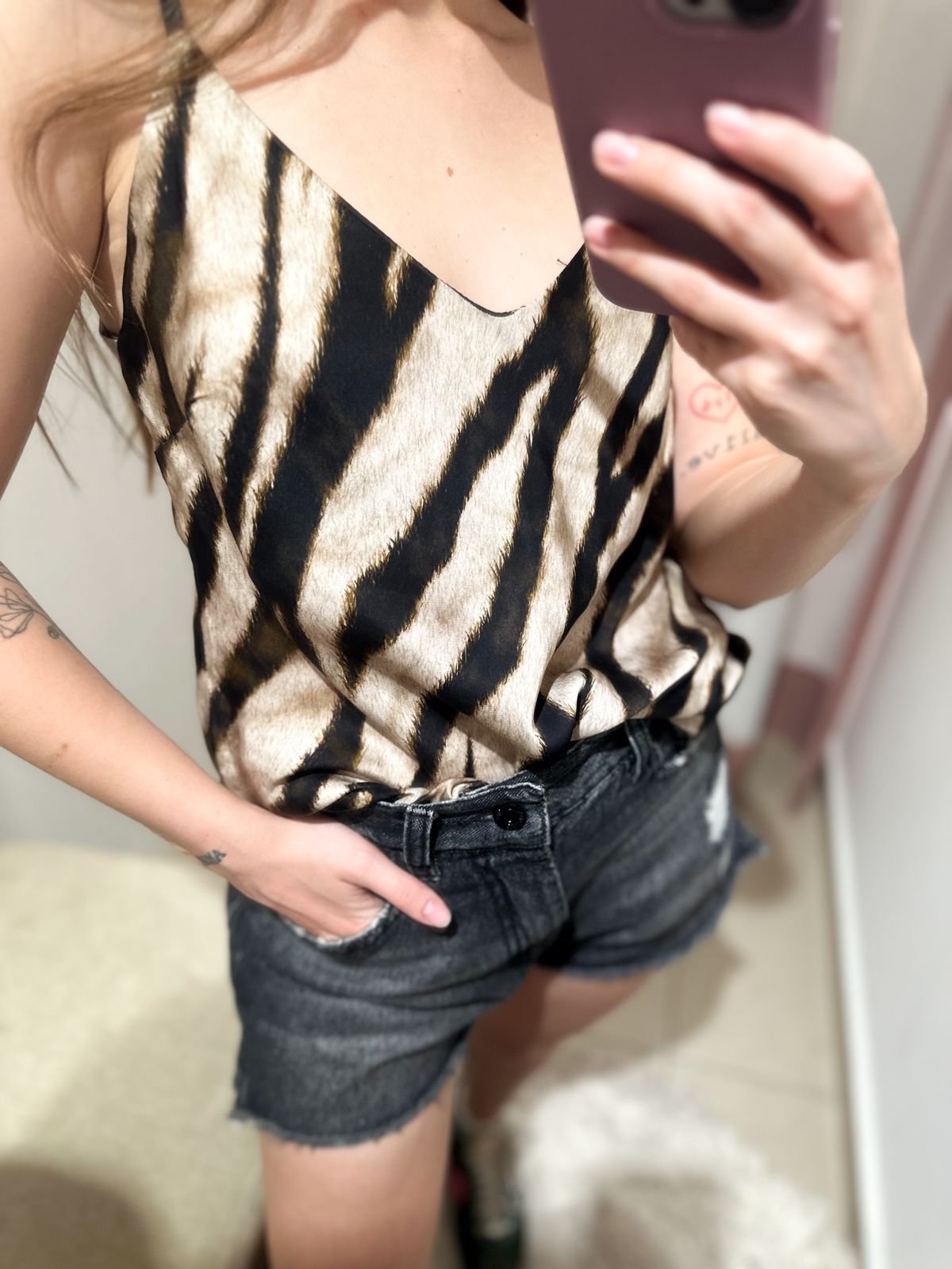 MUSCULOSA TIPO LENCERA DE RASO ACEBRADO DE LA MARCA PIEL LIBRE, BRETELES REGULABLES