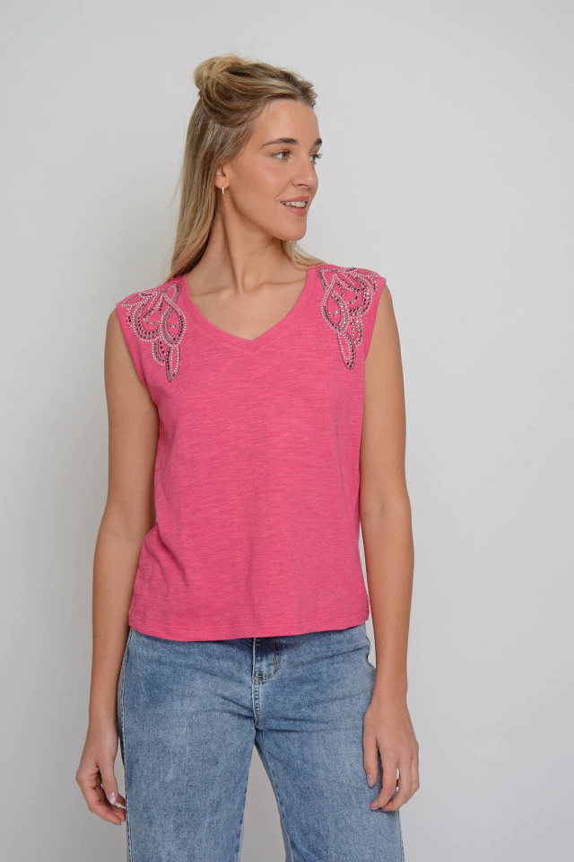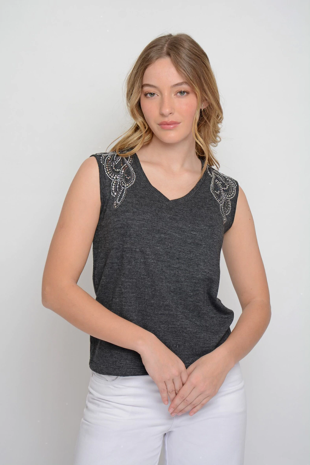SE CARACTERIZA POR SU DETALLE EN HOMBROS CON BRILLOS