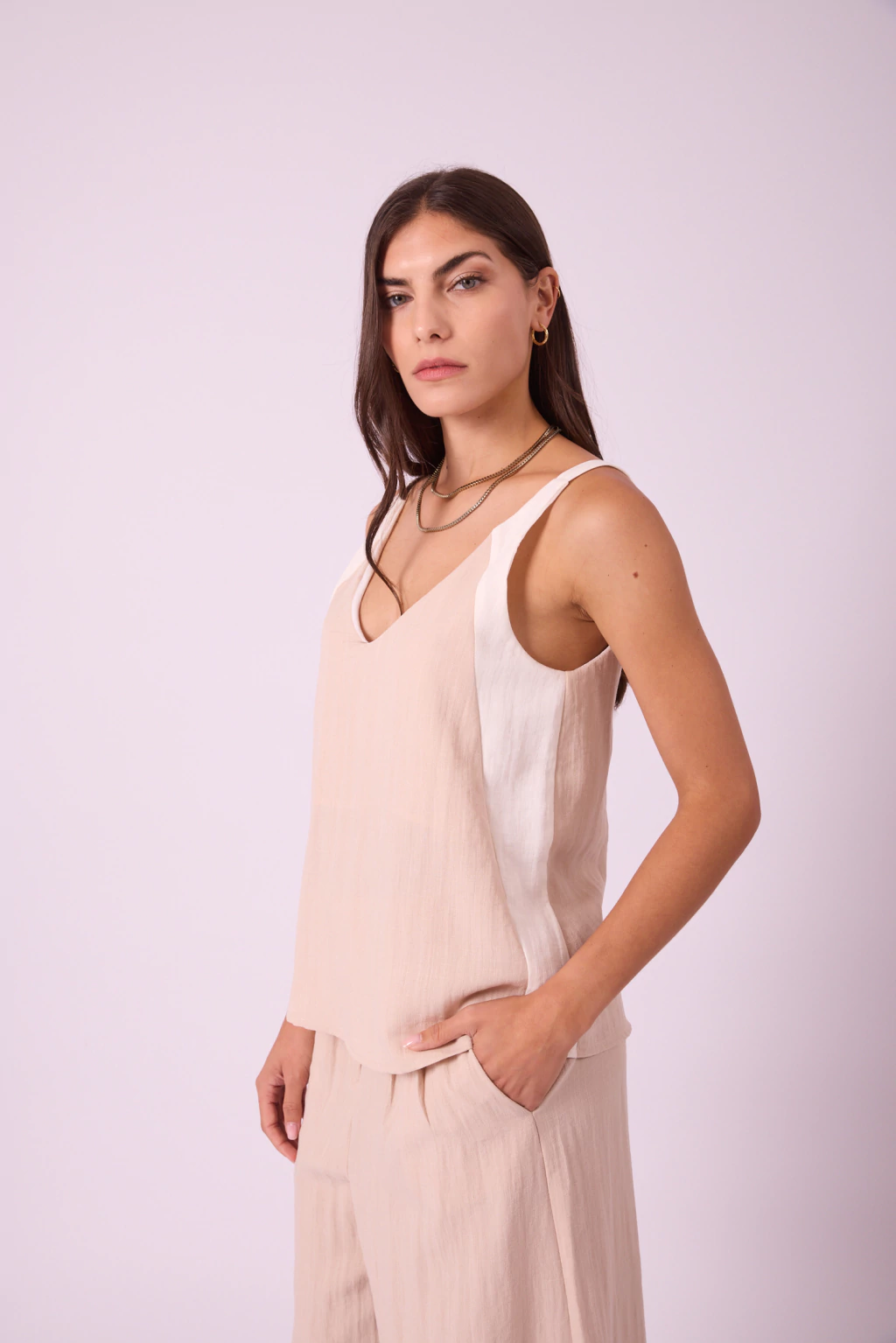 MUSCULOSA CONFECCIONADA EN CREPE DE CORTE SUELTO, ESCOTE V