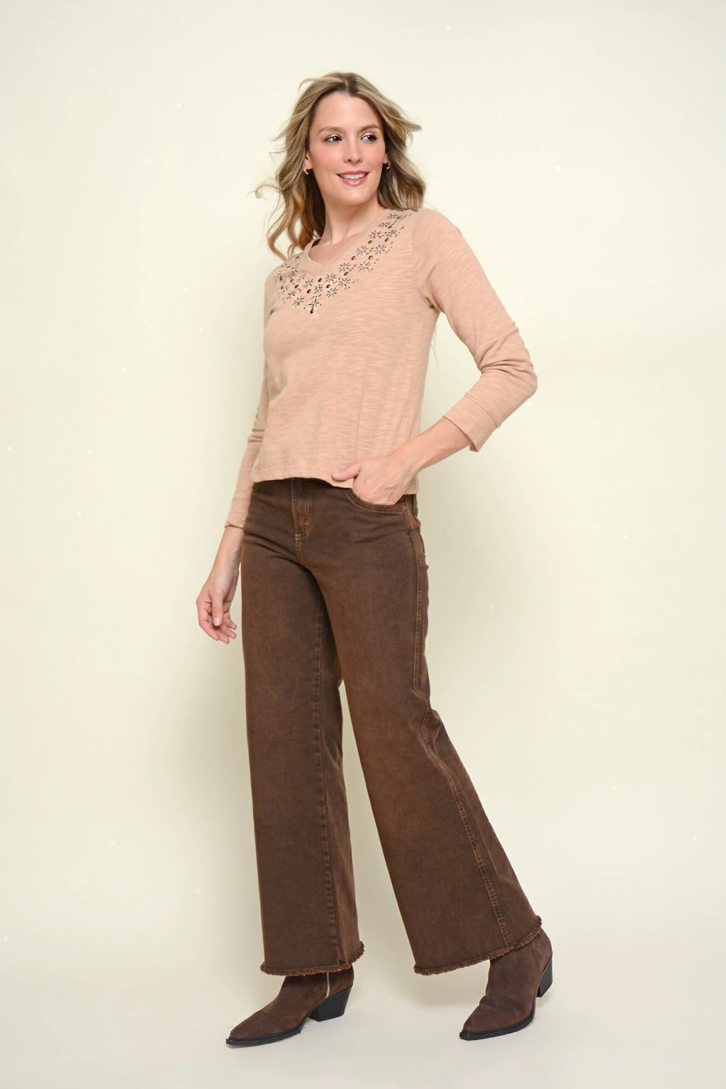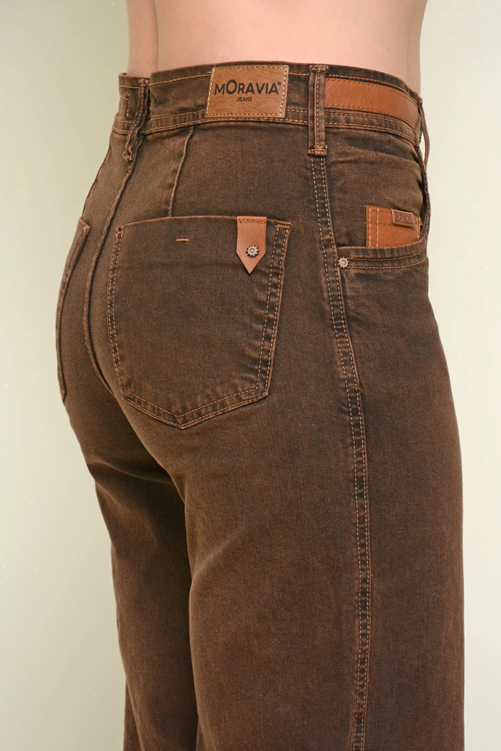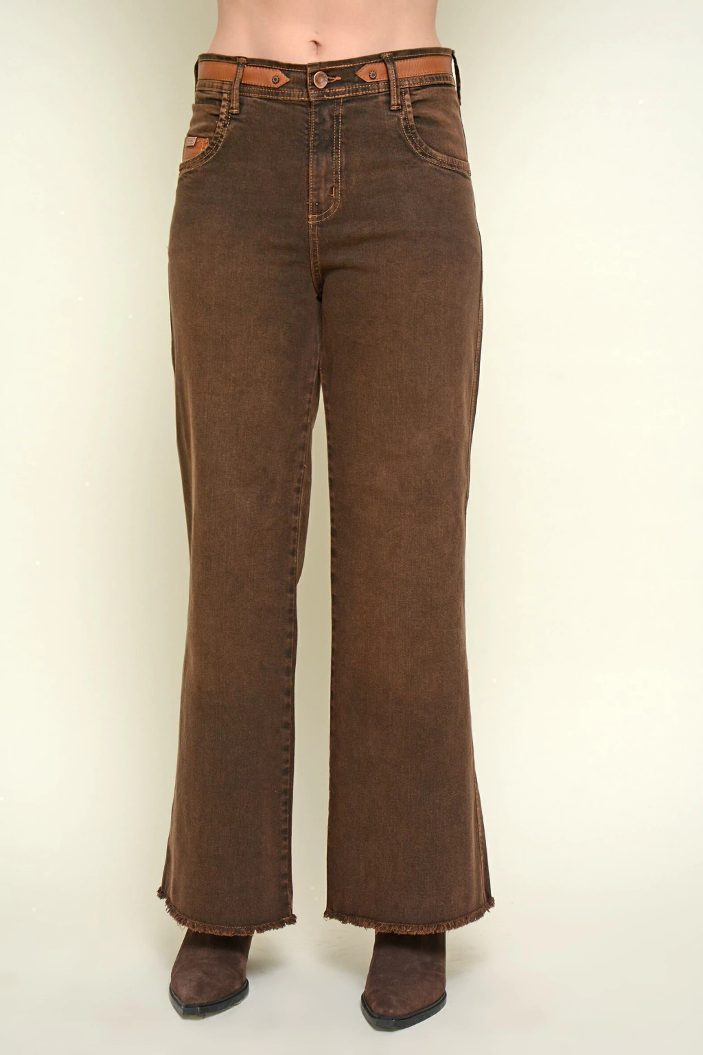 Pantalon PANDORA ancho detalle cuero choco