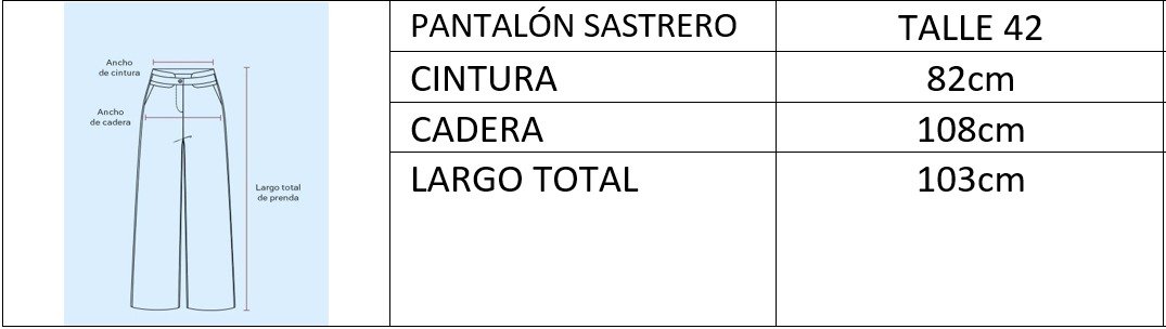 TIRO ALTO CON PRENDEDURA DE CIERRE INVISIBLE MÁS BOTÓN METÁLICO, CUENTA CON PRESILLAS Y CINTO DE LA MISMA TELA.