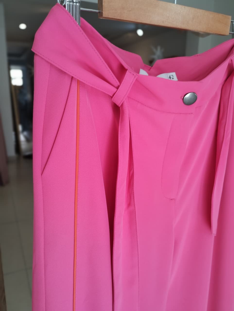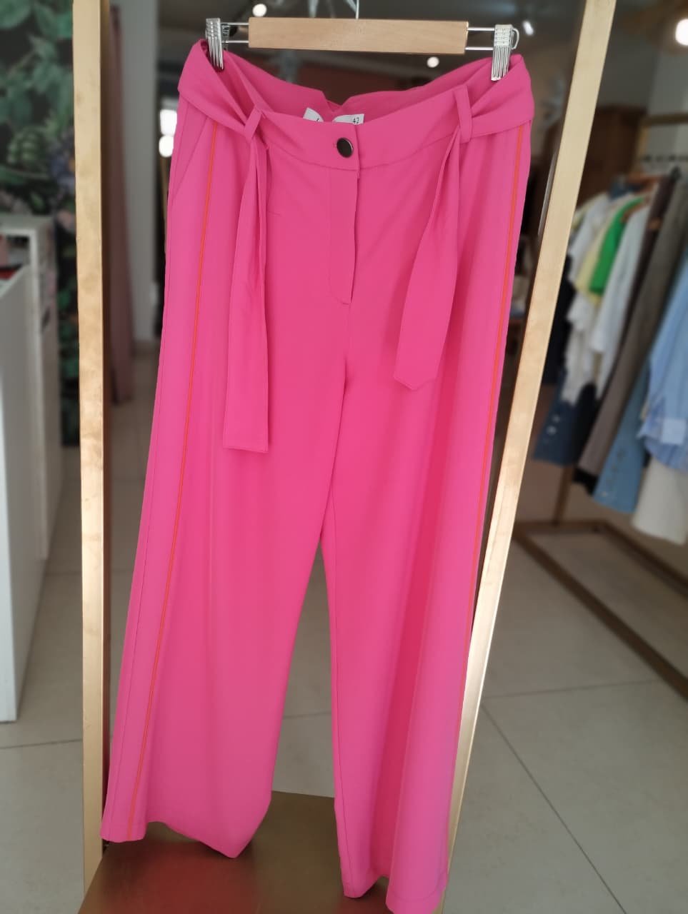 PANTALÓN SASTERO PALAZZO, SE DESTACA POR SU COLOR VIBRANTE CON RIBETES A CONTRATONO EN COLOR NARANJA.