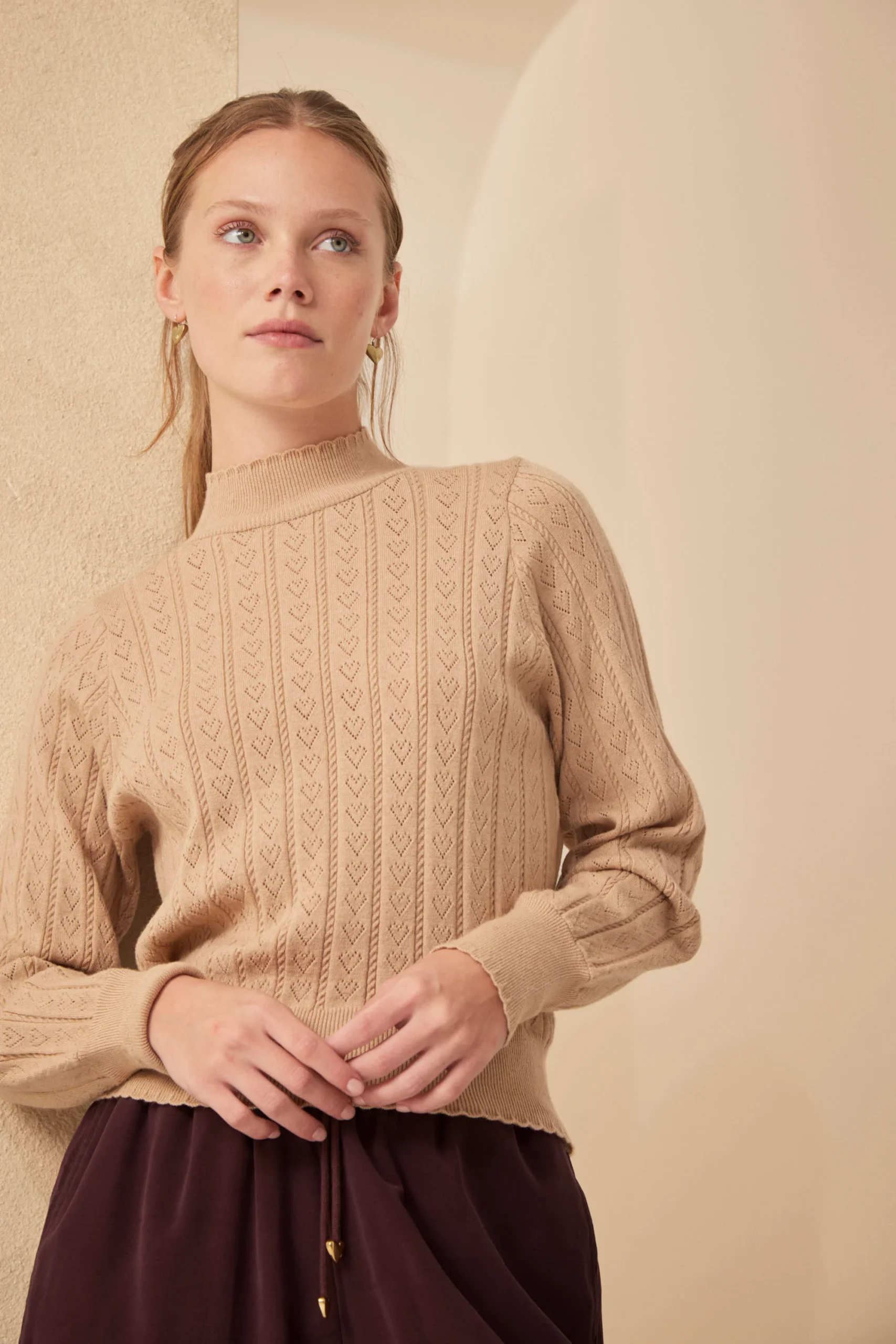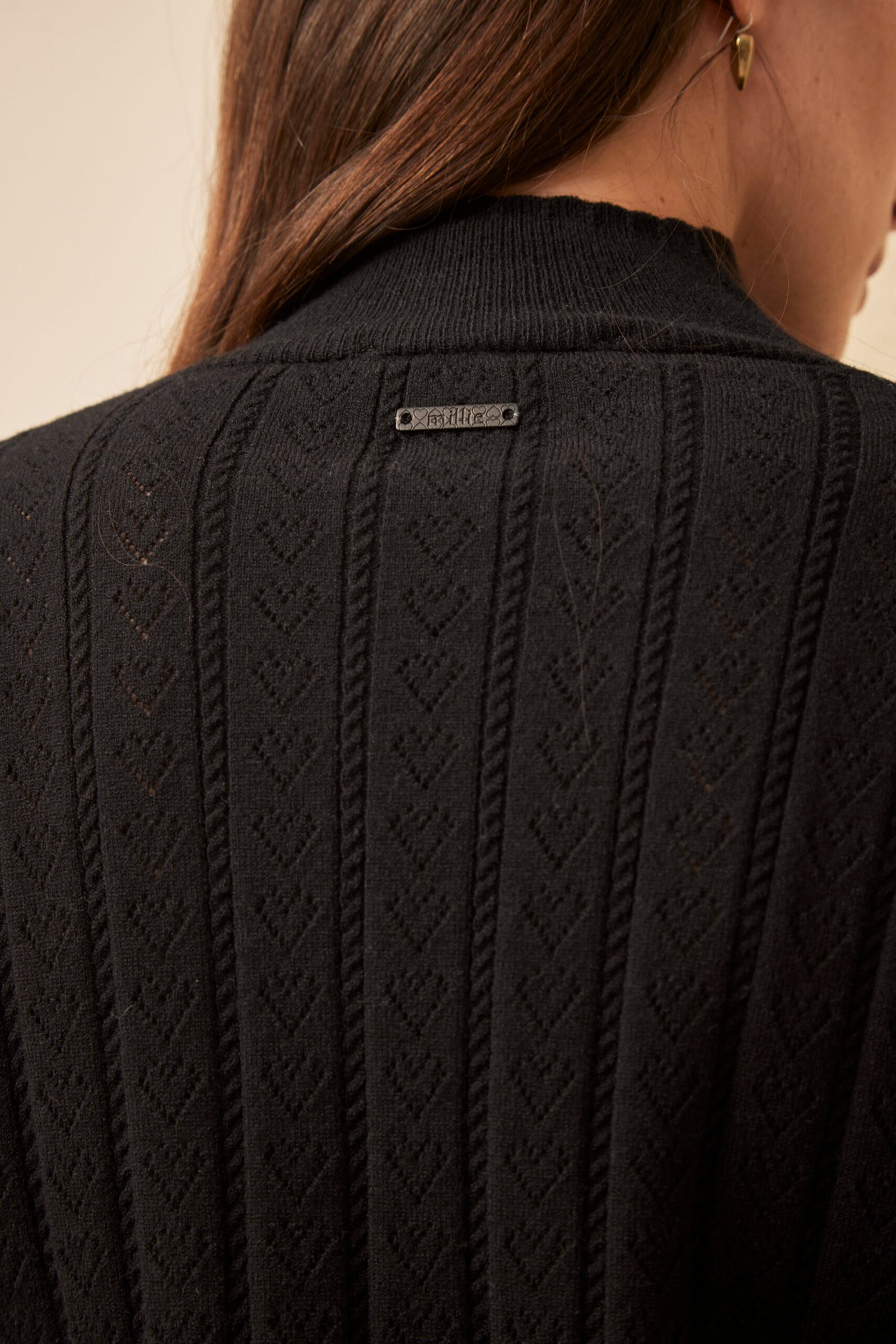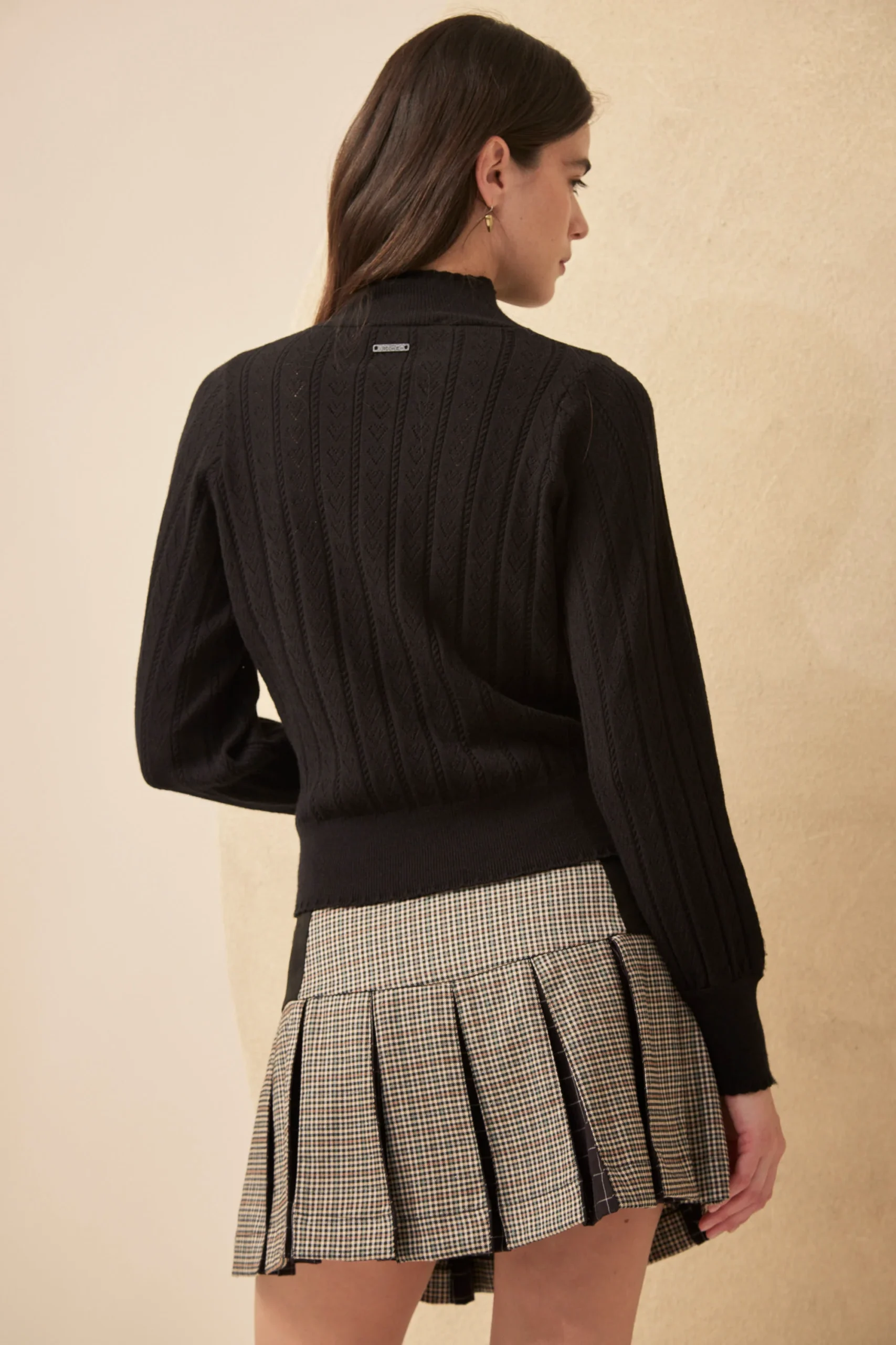La Polera Alfie es puro detalle artesanal. Tejida en punto de corazones y trenzas, con onditas en cuello, mangas y puños, tiene manga princesa y ese aire romántico que define a Millie. Lleva avío metálico Millie. Parte de los Esenciales Millie. Composición: viscosa, nylon, elastano y lana. Suave, con estructura y textura.