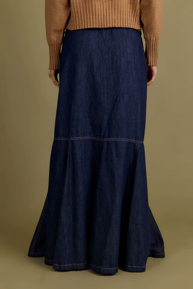 Pollera confeccionada en denim de algodón combinada con detalles en PU.