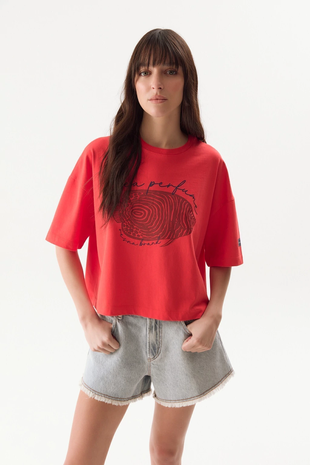 La Remera Capri está confeccionada en jersey. Es corte boxy, de hombro caído y larga a la altura de la primera cadera.