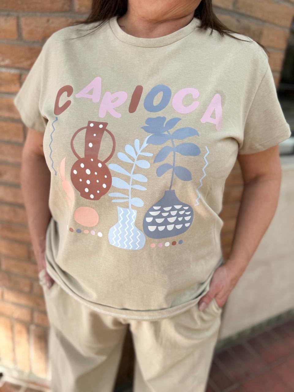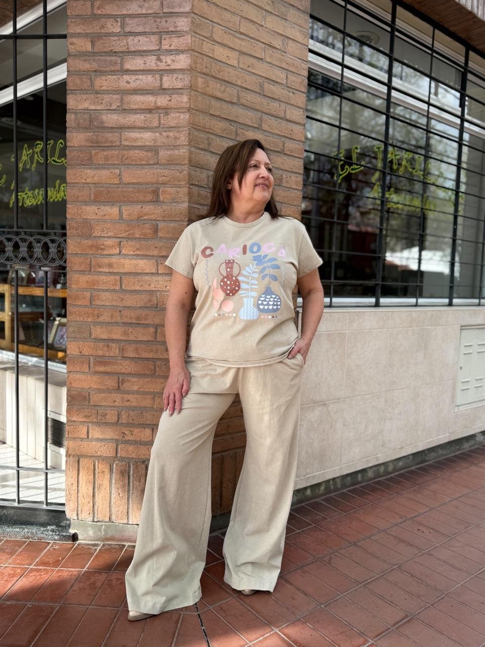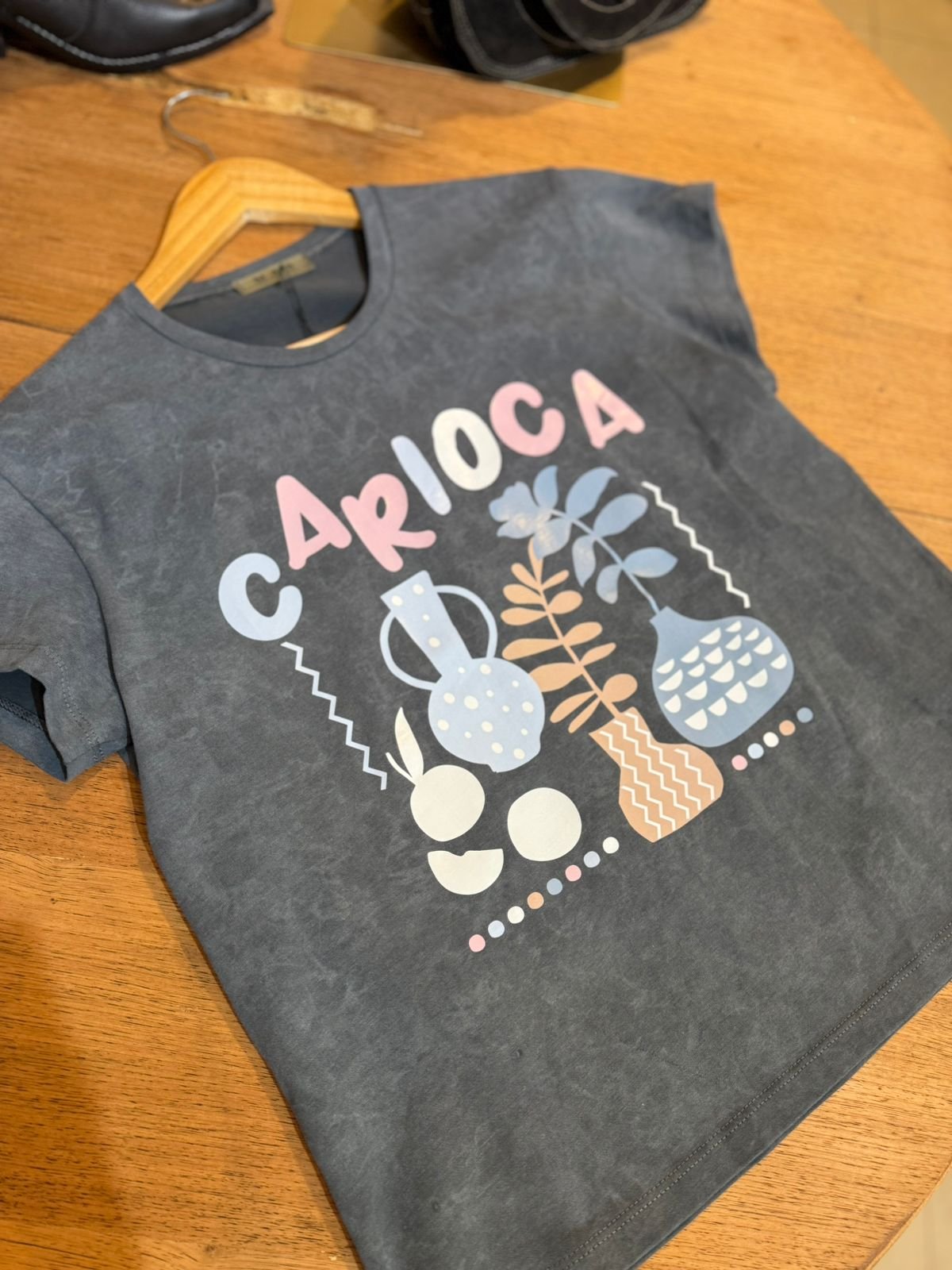 REMERA MANGA CORTA CONFECCIONADA EN ALGODÓN DE LARGO A LA CADERA. Y ESTAMPA EN EL FRENTE