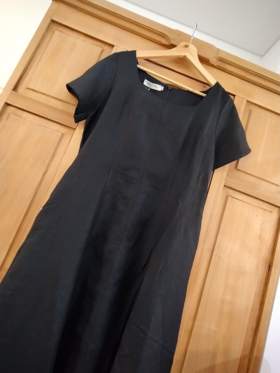 CONFECCIONADO EN LINO VISCOSA, ES DE SILUETA  AJUSTADA CON CIERRE INVISIBLE EN ESPALDA. LARGO MIDI. POSEE BOLSILLOS LATERALES