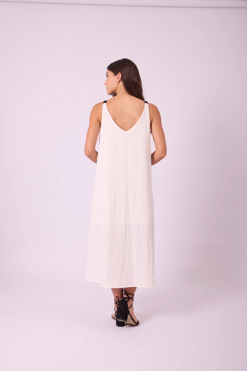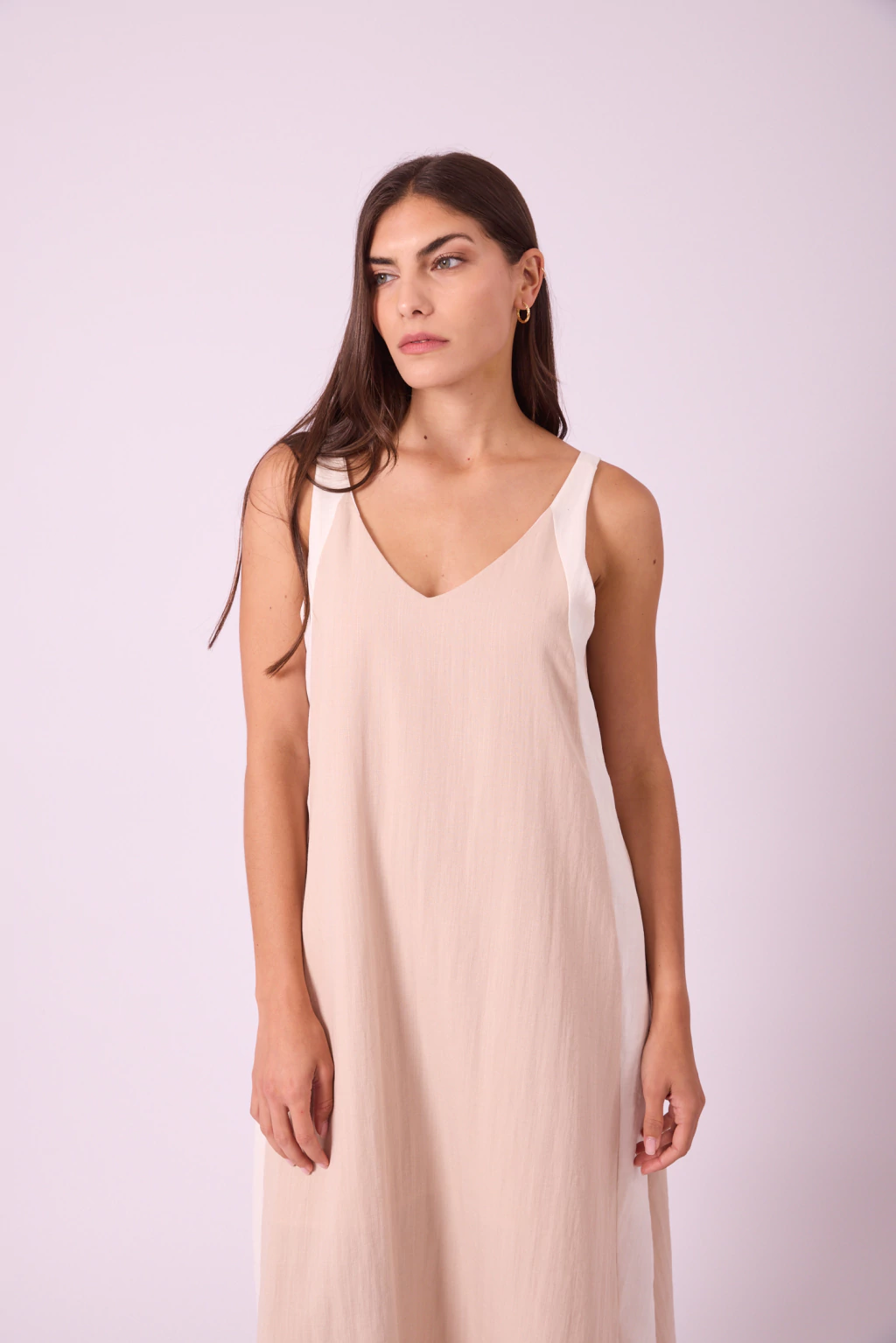 VESTIDO MUSCULOSA CONFECCIONADO EN CREPÉ, DE ESCOTE V Y CORTE SUELTO